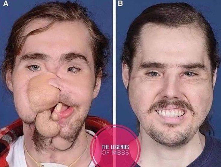 This 25 years old brave man has history extensive ballistic facial injury,requiring multiple procedures including maxillary,mandibular, zygomatic ,and right orbital floor open reduction and internal fixation with debilitating functional deficits and exposed hardware. 23 years old John Doe was found to be the match and a partial face and double jaw transplantation was performed. Credits : https://www.instagram.com/p/CKWCFb9hJi-/?igshid=9xogzdd7z4cw