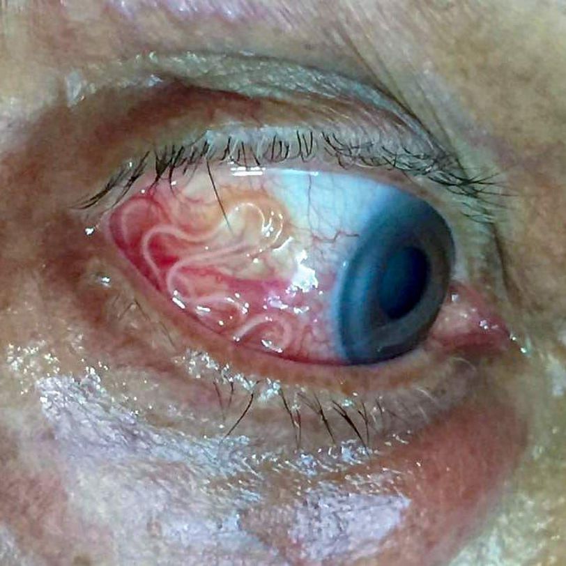 A 60-year-old patient went to the New Medical Center in Kundapur, Karnataka, India, complaining about constant pain and itching in his eye. On examination they spotted the parasite in the lateral part of his sclera. The worm β a parasitic ringworm known as a Wuchereria Bancrofti β had the potential to harm the manβs eyesight if it was not removed immediately. Wuchereria Bancrofti, a human parasite, is a major cause of lymphatic filariasis. These filarial worms are spread by a variety of mosquito vector species. Credit: @optometry.case