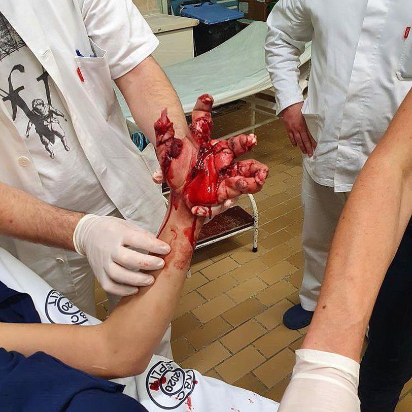 We present a pictorial case of a devastating hand injury following a firework explosion in a young male patient. The blast resulted in splaying of the hand with multiple fractures, neurovascular compromise and soft tissue loss. The firecracker exploded in this 12-year-old’s hand while he was holding it, just moments before he managed to throw it. Injury caused by a firework exploding while being held can have a devastating effect on the functional status of the hand. They include soft tissue injuries, fractures, burns and traumatic amputations in addition to disruption of the neurovascular supply. Children are the most likely victims of fireworks injuries due to misuse. Injured patients often report that the fuse simply burned too quickly and ignited the device before the device could be released or thrown. The pattern of these injuries are quite different from those of large scale blast injuries because in most cases these blast injuries occur from firecrackers and homemade bombs, which have a variable blast potential with low intensity explosives deflagrating at rates up to 400 m/s and high intensity explosives deflagrating at rates varying from 1000–9000 m/s. Plastic surgeons are frequently involved in the primary care of these patients as many such injuries involve the hand and require amputations and reconstruction surgeries.