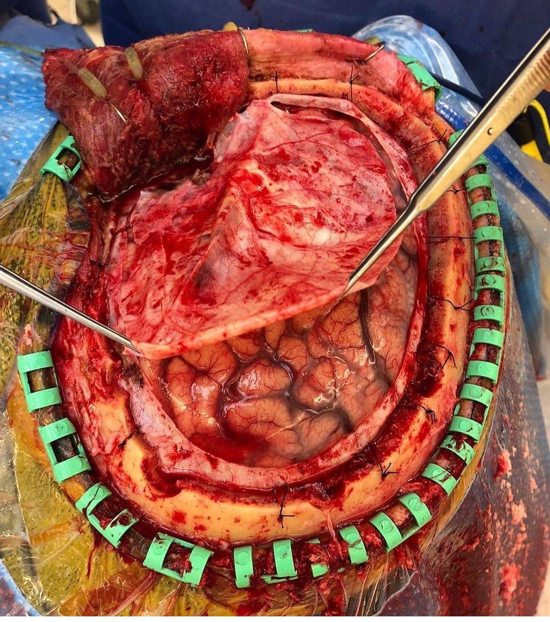 This is a neurosurgical procedure in which part of the skull is removed to allow a swollen brain space to expand without being compressed. It is performed on victims of traumatic brain injury, stroke and other conditions associated with increased intracranial pressure. In patients with infarction that occupies a large space as a result of ischemic stroke, the subsequent edema complicated by transtentorial hernia represents a lethal threat. Especially in patients with malignant infarction of the middle cerebral artery, cerebral edema secondary to vessel occlusion is associated with high mortality. Through decompressive craniectomy, a significant proportion of the skull is surgically removed, allowing the ischemic tissue to move through the surgical defect rather than into the unaffected regions of the brain, thereby preventing secondary damage due to increased intracranial pressure