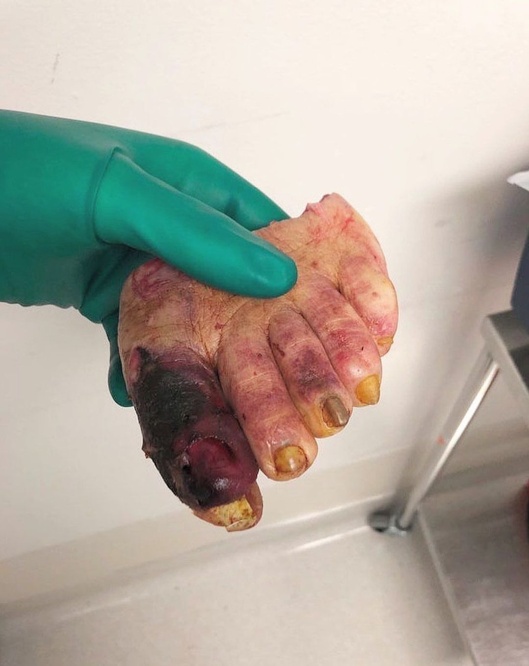 Mid-foot amputation due to diabetic gangrene!! Gangrene can develop when the supply of blood to an area of your body is interrupted. This can occur as the result of an infection arising from an injury, and/or due to hardening and narrowing of the arterial walls both resulting in obstruction of blood supply. All of your organs need oxygen to survive. If one of your body parts isn’t getting oxygen through your blood, it can deteriorate and die. People with diabetes have an increased risk of developing gangrene. This is because the high blood sugar levels associated with the condition damages the nerves, particularly those in the feet, which can make it easy to injure yourself without realising. High blood sugar can also damage your blood vessels, restricting the blood supply to your feet. Less blood means your feet will also receive fewer infection-fighting cells, so wounds will take longer to heal and are more likely to become infected. An infection can spread quickly and, if left untreated, can lead to sepsis and eventually death.