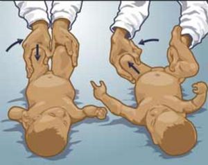 Barlow and ortolani test to check for developmental dysplasia of hip.