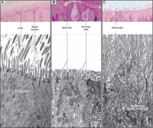 Stereovilli or Stereocilia is microvilli of unusual length of cilia. . * Stereocilia are unusually long, immotile microvilli that are not widely distributed among epithelia, in fact, they are (1) limited to the epididymis, to the proximal part of the ductus deferens of the male reproductive system (2) and to the sensory (hair) cells of the ear. . . * They (the Stereocilia) are included in the ear as hair cells because this unusual surface modification is treated as a separate structural entity. . . * The Stereocilia of the genital ducts are extremely long processes that extend from the apical surface of the cell and facilitate absorption. . . * Unique features: the apical cell protrusion from which they arise and thick stem portions that are interconnected by cytoplasmic bridges. . . * Like microvilli, the Stereocilia are supported by internal actin filament bundles that are cross-liked by fimbrin. But the difference is in Stereocilia, a plasma membrane-associated molecule (erzin), anchor s the actin filaments to the plasma membrane of Stereocilia. . . * The obvious differences of microvilli and Stereocilia (other than size/length and presence of erzin) is the absence of villin from the tip of the stereocilium. . . ▪️Stereocilia of the sensory epithelium of the ear are uniformed in diameter and possess an internal structure similar to that of the genital duct stereocilia but serve as sensory receptors. (Photo : aibolita.com) [source : 4th edition of Histology text an Atlas by M.H.Ross, G.I.Kaye and W. Pawlina - page 90&91]