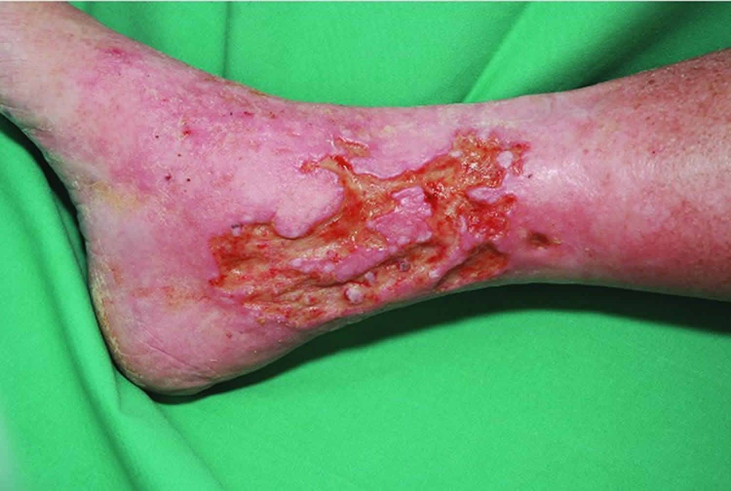 A venous skin ulcer is a sore on your leg that’s very slow to heal, usually because of weak blood circulation in the limb. They can last anywhere from a few weeks to years. You may hear a doctor or nurse call them “venous leg ulcers.” They can sometimes lead to more serious problems if you don’t have them treated. But there are steps you can take to prevent them from happening. What Causes Them? Venous ulcers happen when there’s a break in the skin on your leg, usually around the ankle. The veins in the leg, which should send blood back to the heart, might not be doing their job all that well. That’s often because the valves that stop the flow of blood back into the veins aren’t working like they should. This backflow of blood means increased pressure in the end of the limb. When that happens, it can weaken the skin and make it harder for a cut or scrape to heal. They often occur over bony areas, such as your ankle. Who Gets Them? About 1% of Americans have venous skin ulcers. They’re more common in older people, particularly women. You also may have a chance of getting one if you: Have previous leg injuries Have varicose veins Smoke Are obese Have had other circulation problems such as blood clots or phlebitis, a painful swelling of the veins Symptoms A venous ulcer often feels itchy or burns, and the leg around it may be swollen. Other signs may include: A rash or dry skin Brownish discoloration A foul-smelling fluid oozing from the sore An ulcer can also become infected. If that happens, you might notice: A redness or swelling of the surrounding skin Worsening pain A fever Pus Diagnosis If you have a wound that isn’t healing or you think is infected, you should see your doctor. Usually, all it takes is a quick examination of the sore and the skin around it to figure out whether you have a venous skin ulcer. Your doctor will ask you if you have a history of ongoing (or “chronic”) conditions, such as diabetes or hardening of the arteries. In some cases, however, your doctor might order other tests, such as an X-ray or a CT scan, to check out your veins and the area around the ulcer in more detail. Sometimes, an ulcer can lead to other problems, including serious skin and bone infections. And in rare cases, it can give rise to skin cancer. Treatment The most common treatment is a compression bandage or stocking. The pressure should improve the blood circulation in your leg, boosting your body’s ability to heal the sore. You’ll probably be told to raise your leg for set lengths of time as well. This also helps circulation. Doctors typically recommend a half-hour at a time, 3 or 4 times a day. If your ulcer is infected by bacteria, you’ll probably be given antibiotics to kill the infection. You might also be given a moist dressing to put over the ulcer to help it heal more quickly. In some cases, your doctor might recommend surgery to improve the circulation in your legs. This can help your ulcer heal and could prevent similar problems later. Most ulcers heal after 3 or 4 months of treatment. However, some can take longer, and some may never clear up. Prevention There are a variety of ways you can prevent venous skin ulcers through lifestyle changes, diet or medication. You might: Quit smoking Lose weight Control chronic conditions such as high blood pressure or diabetes Take aspirin to prevent blood clots Reduce the amount of salt in your diet Exercise regularly Wear compression stockings Keep your legs elevated when you can