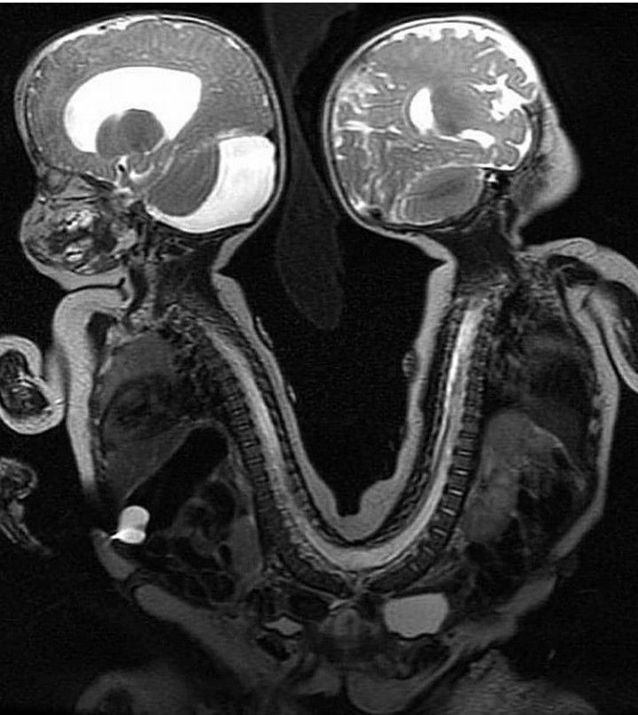 The MRI scan shows the case of conjoined twins who were successfully separated in a 13 hours long surgical procedure. The twins were linked back to back, in the pelvis and in the lower portion of the spine. The surgical team for this complex procedure comprised of 34 members from various pediatric specialities. Credits: https://www.instagram.com/p/CM5INHYh49q/?igshid=1tox3033wskea