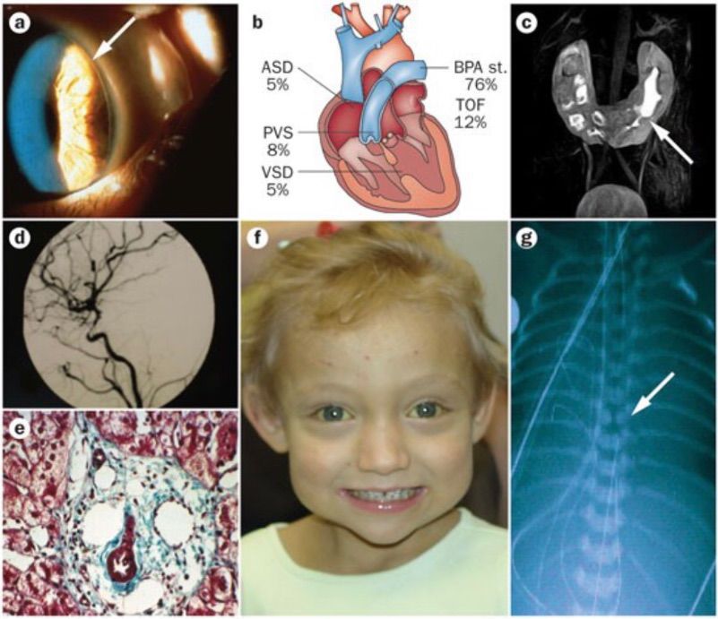 What is Allagille syndrome? It is an inherited condition associated with biliary hypoplasia /(bile builds up in the liver)( ductopenia), vertebral anomalies, prominent forehead, deep set eyes, peripheral pulmonic stenosis. Autosomal dominant associated with mutation in JAG1 or NOTCH2