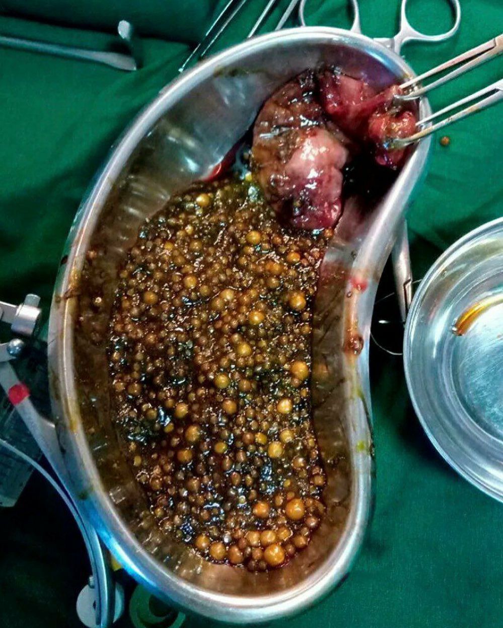 A gallstone is a stone formed within the gallbladder out of precipitated bile components. Gallstone disease refers to the condition where gallstones are either in the gallbladder or common bile duct. The presence of stones in the gallbladder is referred to as cholelithiasis. Presence of gallstones in the common bile duct is called choledocholithiasis. A characteristic symptom of a gallstone attack is the presence of colicky pain in the upper-right side of the abdomen, often accompanied by nausea and vomiting. The pain steadily increases for approximately 30 minutes to several hours. Often, attacks occur after a particularly fatty meal and almost always happen at night, and after drinking. In addition to pain, nausea, and vomiting, a person may experience a fever. If the stones obstruct the duct and cause bilirubin to leak into the bloodstream and surrounding tissue, there may also be jaundice and itching.