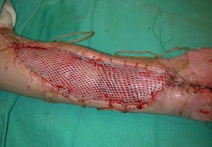 It is a mesh graft and is done in injuries where the skin has been removed which could be due to burns or trauma. There are also other techniques like pinch graft and skin flaps.