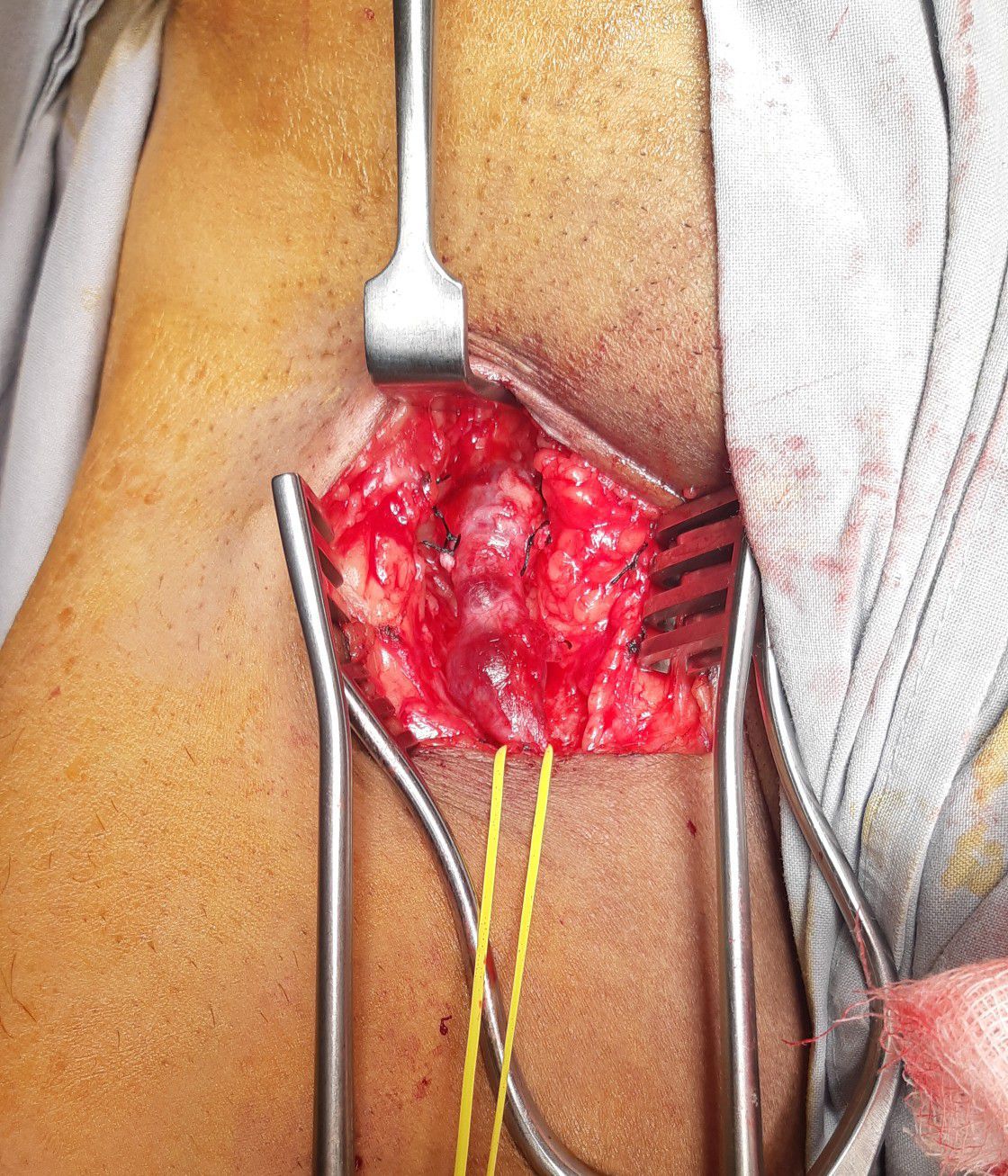 Given above is the image of a dilated great saphenous vein right before it drains into the femoral vein at the superomedial aspect of the thigh. The dilated veins are referred to as varicose veins. The main reason why these veins dilate is valve incompetence leading to backflow of blood into the limbs. Factors such as constipation, pregnancy, weight lifting etc which increase intra abdominal pressure lead to poor emptying of limb veins and hence, promote the development of varicose veins. Treatment options involve use of compression stockings, laser ablation and surgical ligation and stripping.