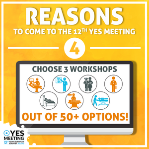 4. +50 WORKSHOPS Today we have some bad news: you'll have a hard time selecting 3 out of the over 50 workshops we have prepared! Improve your set of skills in a wide range of areas, from infertility and healthcare management to intensive care units or interventional cardiology - just to name a few. Join us and get a complete hands-on experience in your favourite area of medical expertise... times 3! Learn more about our workshop selection here: http://yesmeeting.org/workshops-2017/