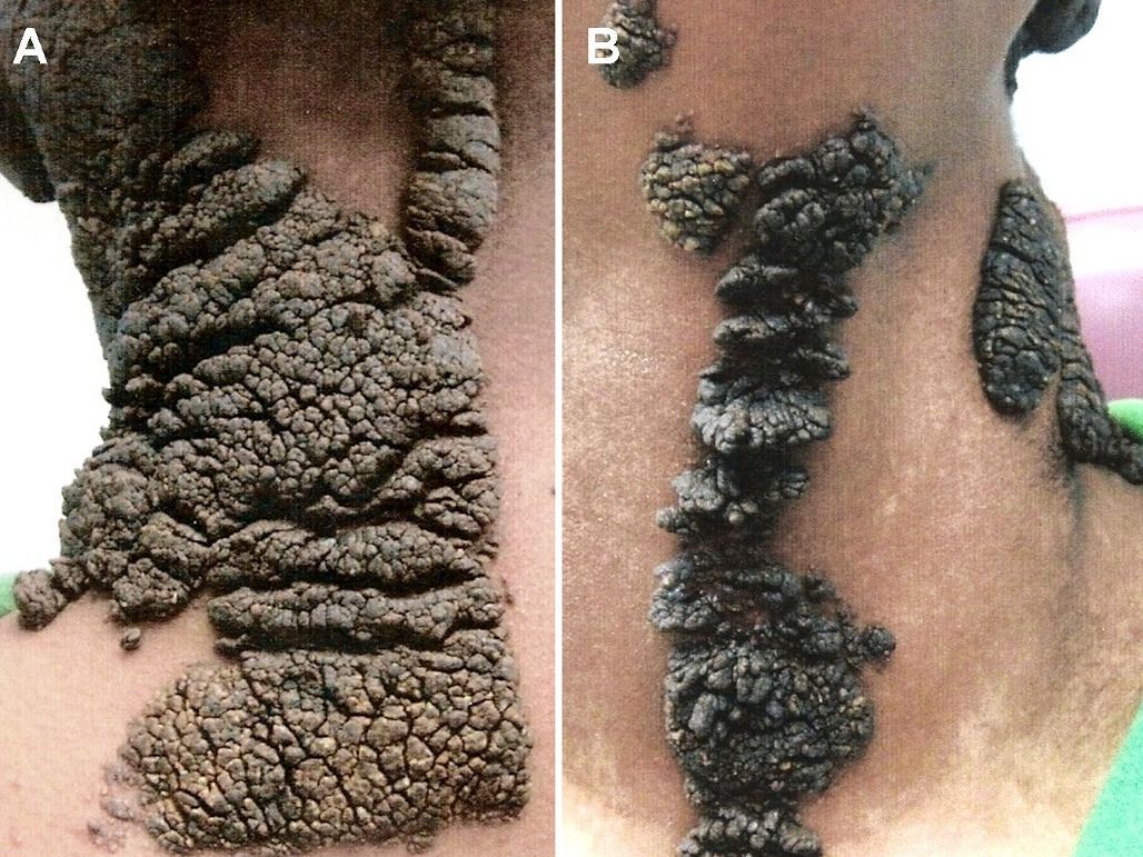 Epidermal nevus syndromes (ENSs) are a group of rare complex disorders characterized by the presence of skin lesions known as epidermal nevi associated with additional extra-cutaneous abnormalities, most often affecting the brain, eye and skeletal systems. Epidermal nevi are overgrowths of structures and tissue of the epidermis, the outermost layer of the skin. The different types of epidermal nevi can vary in size, number, location, distribution and appearance. Neurological abnormalities that can be associated with ENSs can include seizures, cognitive impairment, developmental delays and paralysis of one side of the body (hemiparesis). Skeletal abnormalities can include abnormal curvature of the spine, malformation of the hip and abnormalities of the arms and legs (e.g., underdevelopment or absence or overgrowth of limbs). Ocular abnormalities may include cataracts, clouding (opacity) of the cornea or partial absence of tissue of the iris or retina (colobomas). Endocrine abnormalities such as vitamin D-resistant rickets have been associated with Schimmelpenning syndrome. The specific symptoms and severity of ENSs can vary greatly from one person to another. Most ENSs occur randomly for no apparent reason (sporadically), most likely due to a gene mutation that occurs after fertilization (postzygotic mutation) and is present in only some of the cells of the body (mosaic pattern).