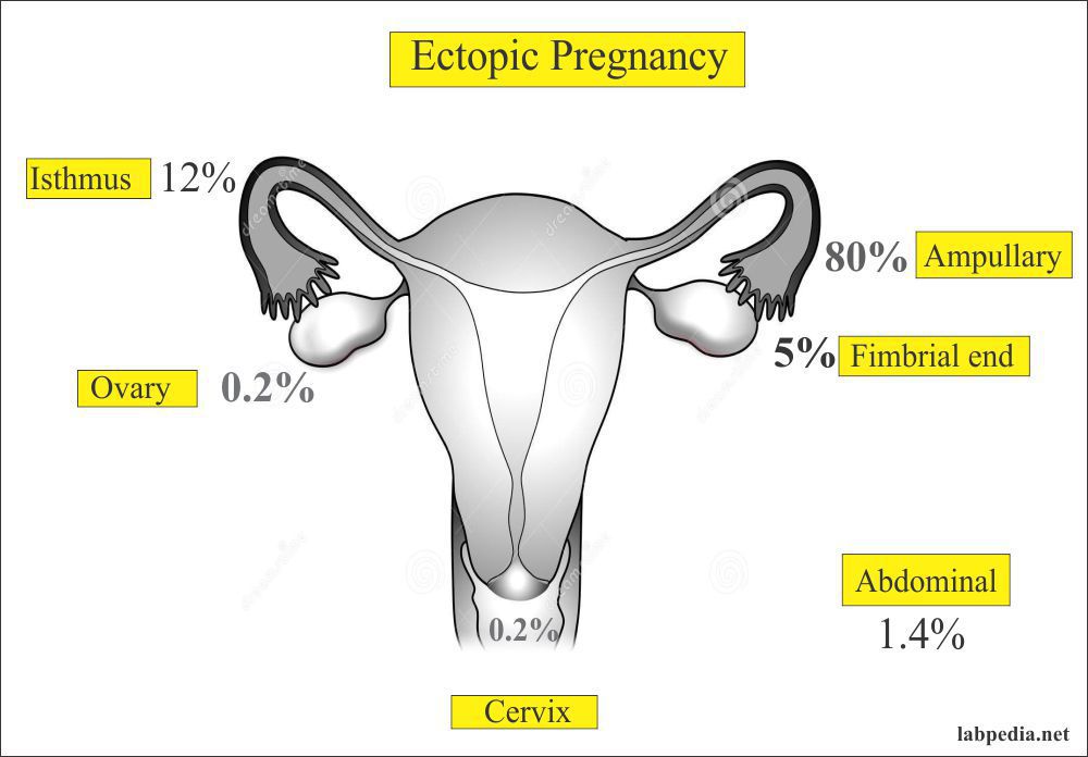 Ectopic pregnancy is defined as the implantation of the conceptus outside the uterus. About 98% of ectopic pregnancies are tubal. Other sites of ectopic implantation are the peritoneum or abdominal viscera, the ovary, and the cervix. Any condition that prevents migration of the fertilized ovum to the uterus can predispose to an ectopic pregnancy, including a history of infertility, pelvic inflammatory disease and prior tubal surgery. Combined intrauterine and extrauterine pregnancy (heterotopic) may occur rarely. Undiagnosed ectopic pregnancy is one of the most common causes of maternal death during the first trimester.