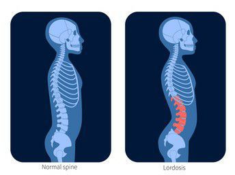 Lordosis refers to an exaggerated inward curve of the spine. Some people call the condition “swayback.” Lordosis most often occurs in the lower back, in which case it is called lumbar lordosis. If it occurs in the neck, the medical name for it is cervical lordosis. The spine can also curve outward, in a hump shape, and this is called kyphosis. It typically affects the middle or upper back, rather than the lower back or neck. Sometimes, having another type of spinal curve causes the body to develop lordosis, to compensate for the existing imbalance. Symptoms The defining characteristic of lordosis is an exaggerated inward curve of the spine. Depending on the location, lordosis can cause the buttocks and stomach area to stick out. A person with lordosis may find it difficult to lie flat on the floor, due to the curve in their back. In many cases, lordosis alters a person’s appearance but causes no symptoms. However, severe lordosis may cause: back or neck pain pain that radiates into the legs and feet, which is called sciatica tingling or numbness Rarely, lordosis may cause a person to lose control of their bladder or bowels or experience sudden, severe leg pain or weakness. If this happens, seek medical attention immediately. Causes and risk factors Doctors do not always know why lordosis develops, but there are certain causes and risk factors. These can help a doctor classify lordosis, as follows: Traumatic lordosis: This is caused by an injury to the spine, such as a fracture. Osteoporosis, which weakens the bones, may increase the risk of these fractures. Congenital lordosis: This can stem from an inherited condition such as achondroplasia, which affects cartilage growth. It can occur due to a problem with the development of the spine during childhood. Postural lordosis: This is caused by uneven posture. Having overweight or weakness in the abdominal muscles can increase the risk, as both factors strain the lower back. Neuromuscular lordosis: Several neuromuscular conditions can cause lordosis, including muscular dystrophy and cerebral palsy. Postsurgical lordosis: This results from back surgery that makes the spine less stable, such as a laminectomy or selective dorsal rhizotomy. Secondary lordosis: This results from having another condition — possibly another type of spinal curve, such as kyphosis or scoliosis, or a condition that affects the hip joints. Obesity: Carrying excess weight can cause the bones and muscles to “lean backward” to improve balance. Osteoporosis: Age and other factors can cause bones to weaken and become brittle, which may lead to curvature of the spine. Spondylolisthesis: This causes one vertebra to slip forward, over another, and it can cause lordosis, usually in the lower back. Diagnosis A doctor can usually identify lordosis with a physical examination. They may also use an X-ray, MRI, or CT scan to confirm the diagnosis. A scan can indicate the extent of the curve in the spine. If the person has symptoms of an injury or a medical condition that can cause lordosis, the doctor may perform additional tests to diagnose the underlying cause. Treatments If the curve in the spine is mildly exaggerated, a person may not require treatment. Often, if there is no pain and the curve does become more pronounced, a doctor does not need to intervene. When lordosis does require treatment, the right approach depends on the cause of the curvature. For example, postural lordosis caused by muscle weakness or overweight may improve with physical therapy and weight management. If a child has lordosis, a doctor may recommend a back brace to prevent the curve from progressing as the child grows. If lordosis causes pain, nonsteroidal anti-inflammatory drugs, or NSAIDs, such as ibuprofen (Advil), may help. A person with severe lordosis may require surgery, during which a surgeon attaches metal rods to the bones in the spine, which permanently fuse into a straighter position. Exercises A healthcare professional can help identify exercises that are safe and effective for people with lordosis. A doctor may recommend a physical therapist or trainer who specializes in these types of conditions. The American Council on Exercise (ACE) identify several that can benefit people with abnormal spinal curvature. ACE recommend the following exercises for people with lordosis. Hip flexor stretches To perform a hip flexor stretch, start from a kneeling position on a soft surface, such as a yoga mat. Place the right foot in front of the body, so that the knee bends at a 90-degree angle, with the right knee directly over the right foot. Pull the shoulders down and back, without arching the back, and keep the pelvis and spine stable. Lean forward into the right hip while keeping the left knee on the ground — and with the pelvis facing forward. Hold the stretch for 30–45 seconds at a time, and repeat 2–5 times for each hip. If it feels comfortable, lean further into the hip to deepen the stretch. Cat-Cow Pose To perform the Cat-Cow yoga pose, start on the hands and knees on the floor or a yoga mat. Place the knees hip-width apart, with the toes flexed. Place the hands directly below the shoulders, facing forward, and shoulder-width apart. Use the abdominal muscles to move the spine into a neutral, straight position. Exhale and slowly arch the spine toward the ceiling, allowing the head to drop down, and hold the position for 10–15 seconds. Inhale and relax the spine, allowing the stomach to fall toward the floor, and hold the position for 10–15 seconds. Return the spine to a neutral position. Supine hollowing According to ACE, to perform supine hollowing, a person should: Lay on the back with the knees bent and the feet flat on the floor, about 1 inch from the buttocks. Extend the arms to the sides at shoulder level. Breathe deeply and allow the shoulders to relax. Pull the shoulders down and back, without arching the back, and hold this position during the exercise. Perform a ge