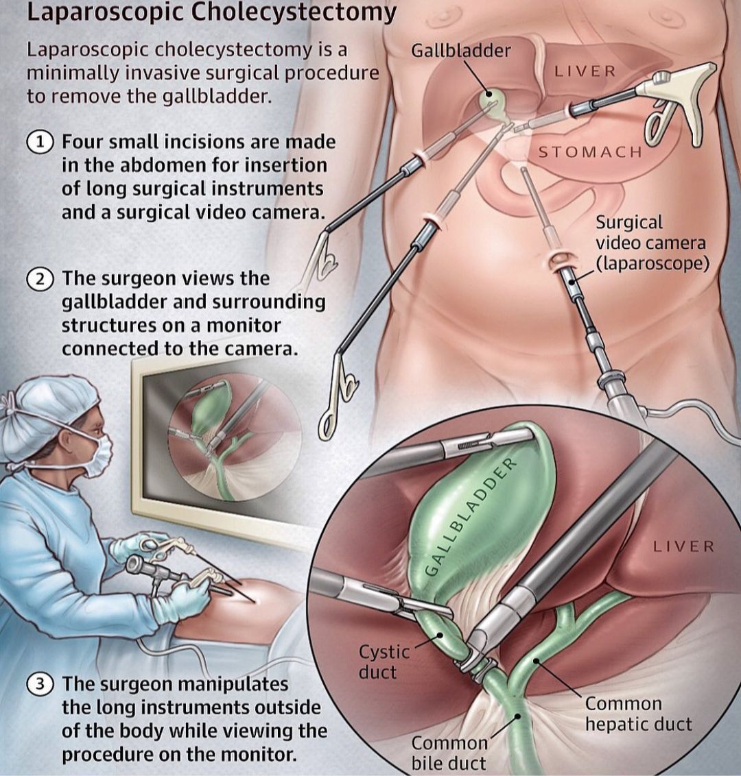 A laparoscopic cholecystectomy is a form of surgery in which the surgeon will remove your gallbladder. The surgeon will make a small incisions on the right side of your abdomen (belly). The surgeon uses one incision to insert a laparoscope and other incisions are made to insert a thin tube with a camera on the end. This will allow the surgeon to monitor the whole procedure and view gallbladder on a screen. At the end of this procedure gall bladder is removed through one of the incisions. This procedure is quite safe as compared to open cholecystectomy and has been the main stay of treatment in cases of gall bladder diseases.