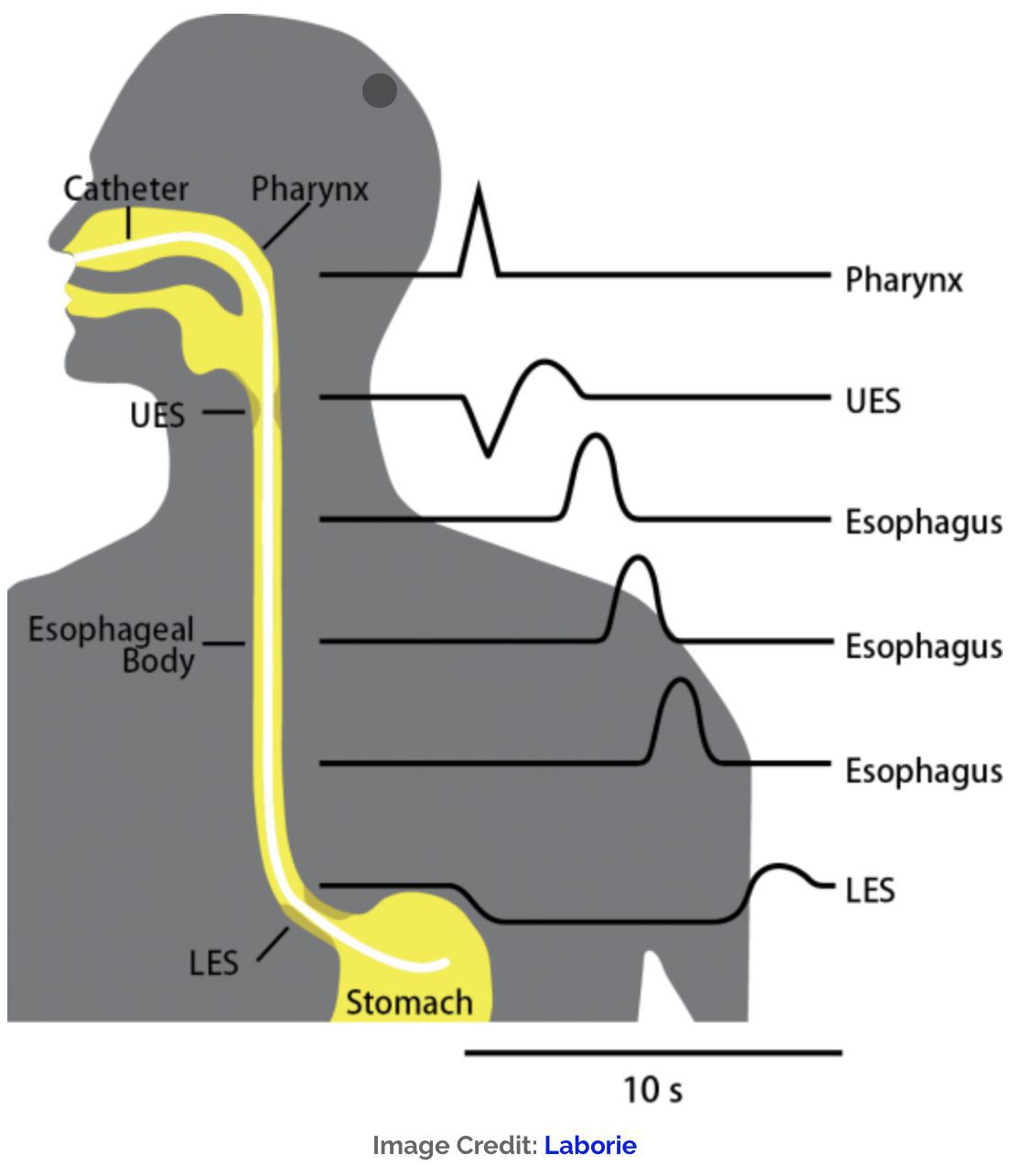 Oesophageal manometry is a procedure that measures the function of the upper esophageal sphincter (UES), the body of the esophagus, and the lower esophageal sphincter (LES) with regards to the motility and pressures built. This test is usually done when there is suspicion of over or under activity of the sphincters due to any underlying pathology due to which the patient is symptomatic. Text Reference: https://emedicine.medscape.com/article/1891791-overview#a2 Image Found On: https://medcaretips.com/esophageal-manometry/