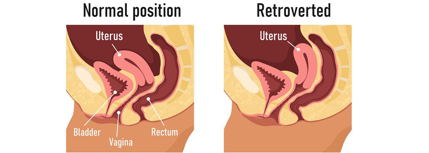 The anatomical position of the uterus is anteverted i.e., it is tilted forward at the cervix. Another variant is called the retroverted uterus, it is tilted backward at cervix. It is directed towards the rectum. Majority of women with retroverted uterus experience no symptoms, however, in a small portion of patient, painful intercourse is the dominant complaint. A notion that retroverted uterus can cause difficulty in pregnancy and repeated miscarriages is disproven. A retroverted uterus: - Can be present congenitally - Can be a consequence of adhesions secondary to any pelvic surgery - Occurs as a result of endometriosis or fibroids - Can occur if pregnancy causes extreme stretching of ligaments that hold the uterus in place A number of management options are present in case the retroverted uterus is symptomatic; the treatment plan aims at managing underlying condition e.g., hormone therapy for endometriosis. Other available options are: - Exercise - Pessaries - Surgery Reference: https://www.betterhealth.vic.gov.au/health/ConditionsAndTreatments/retroverted-uterus Image via https://ivi-fertility.com/blog/pregnant-retroverted-uterus/