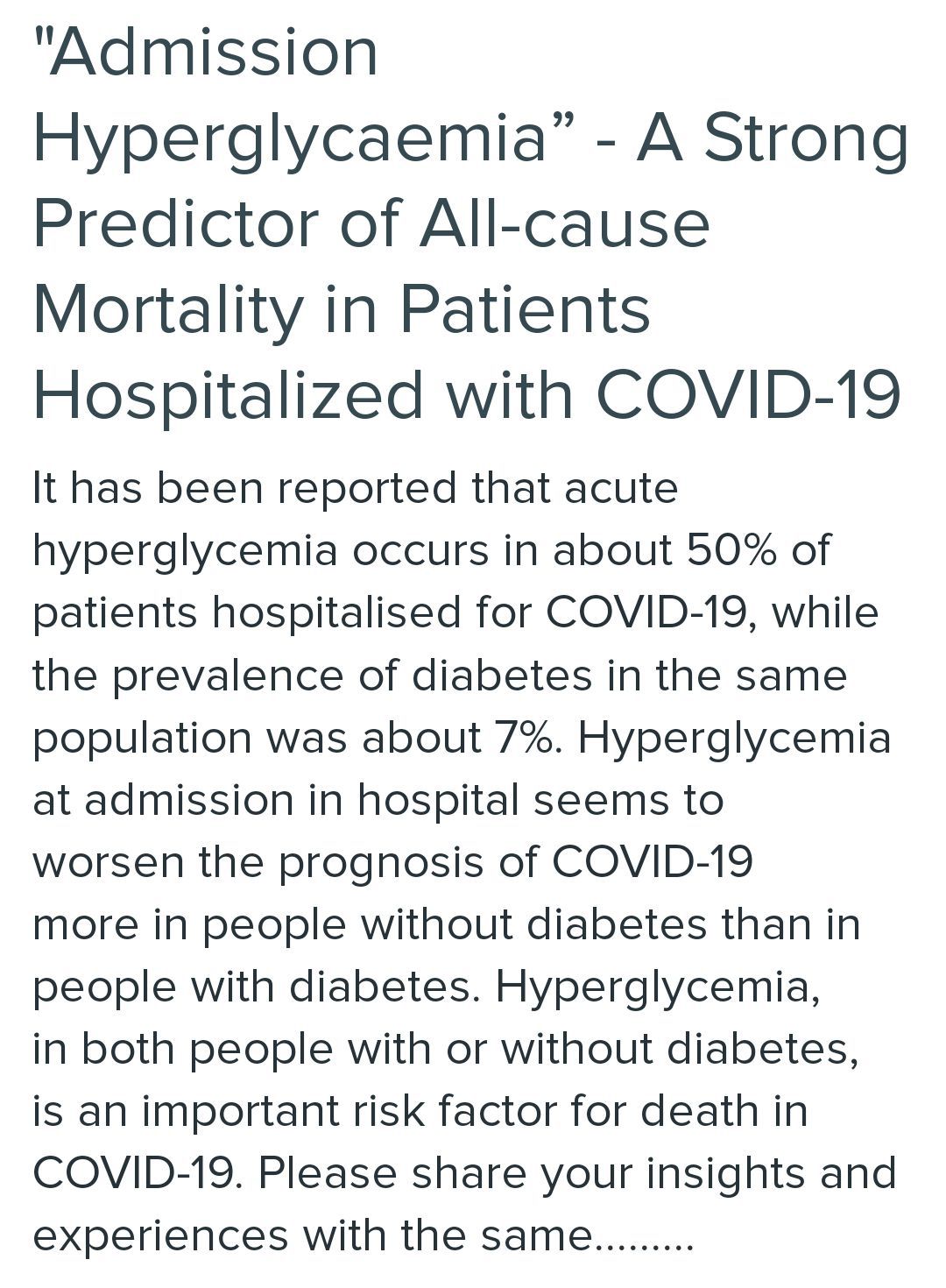 hyperglycaemia in covid PTS.