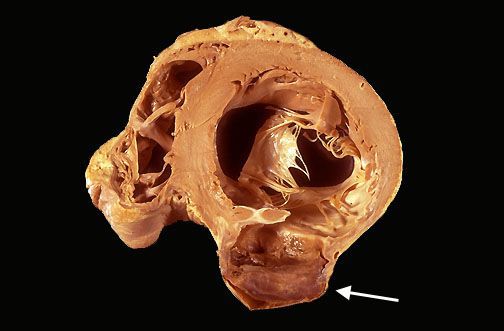Aneurysm is a localized dilatation in a vascular/ heart wall. Myocardial infarction leads to weakening of the muscular wall of the heart which can then bulge out under increased intraventricular pressure. This sac does not contain enough cardiac muscle to contract efficiently which leads to two problems: The portion of the heart is unable to pump which decreases stroke volume and cardiac output. Secondly, this sac acts as a site of blood stasis. Stagnant blood then clots and is prone to embolize to any other artery. This can cause end organ ischemia, the presentation of which will depend on the artery involved. It may terminate in stroke or acute limb ischemia. Image via: https://webpath.med.utah.edu/TUTORIAL/MYOCARD/MI030.html