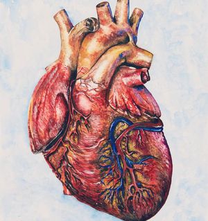 A real piece of art. The heart is a muscular pump with four chambers and an equal number of valves. The two chambers at the top of the heart are known as the atria, a right and a left. The two bottom chambers are the ventricles. The atria receive blood that returns from the different parts of the body, while the ventricles pump that blood back to all body tissues. Valves that separate the atria from the ventricles are called the atrioventricular valves. There are two: the tricuspid on the right and the mitral on the left. Valves at the ventricular outlets are called semilunar valves. The two semilunar valves are the pulmonary and the aortic. The heart wall consists of three layers: the outer epicardium, the middle myocardium, and the inner endocardium. The epicardium and endocardium are thin layers. The myocardium forms the main bulk of the heart and is made up of cardiac muscle fibers. The outermost layer that surrounds the entire heart is called the pericardium. Vessels that carry blood away from the heart to the body are called arteries, while those that bring it back are called veins. The largest artery is named the aorta. It arises from the left ventricle. Follow us @medshots for more shots
