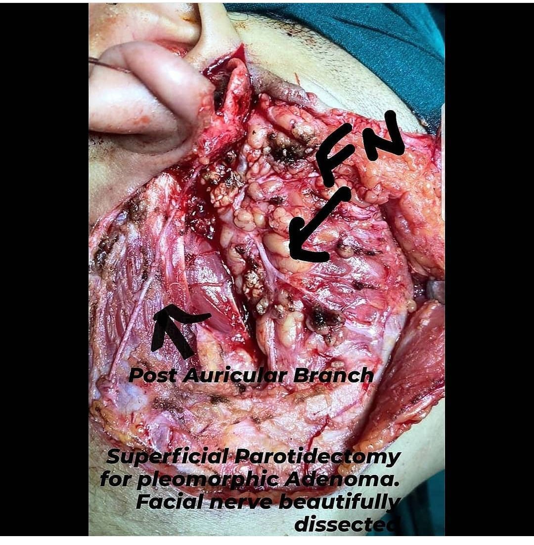 Superficial parotidectomy!! Be aware of facial nerve and post auricular branch