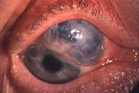 Scleromalacia perforans is a hypersensitivity type III reaction. It is necrotizing anterior uveitis without inflammation. Scleromalacia perforans is an autoimmune disease of episcleral and scleral vasculature. It is usually associated with other autoimmune conditions such as rheumatoid arthritis, Crohn’s disease, Wegener’s granulomatosis, SLE, and periarteritis nodosa. The most common presenting complain is irritation. The vision is unaffected. It is a painless condition. The discoloration of sclera is also noticed by the patients. There is no specific treatment of scleromalacia perforans. The management plan usually aims at treatment of underlying autoimmune disease. Reference: https://eyewiki.aao.org/Scleromalacia_Perforans#Symptoms Image via: https://www.longdom.org/open-access/scleromalacia-perforans-what-we-know-and-what-we-can-do-2155-9570-S2-009.pdf