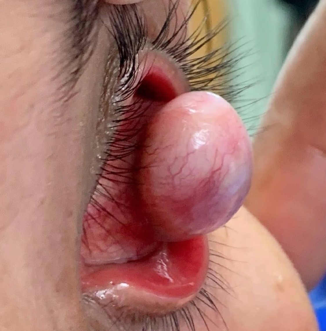 A staphyloma is an abnormal protrusion of the uveal tissue through a weak point in the eyeball. The protrusion is generally black in colour, due to the inner layers of the eye. It occurs due to weakening of outer layer of eye (cornea or sclera) by an inflammatory or degenerative condition. It may be of five types, depending on the location on the eyeball (bulbus oculi). 👉Anterior (corneal) staphyloma. In the anterior segment of the eye, involving the cornea and the nearby sclera. It is an ectasia of pseudocornea ( the scar formed from organised exudates and fibrous tissue covered with epithelium) which results after sloughing of cornea with iris plastered behind, it is known as anterior staphyloma. 👉Intercalary staphyloma. It is the name given to the localised bulge in limbal area, lined by the root of the iris. It results due to ectasia of weak scar tissue formed at the limbus, following healing of a perforating injury or a peripheral corneal ulcer. There may be associated secondary angle closure glaucoma, may cause progression of the bulge if not treated. Defective vision occurs due to marked corneal astigmatism. Treatment consists of localised staphylectomy under heavy doses of oral steroids. 👉 Ciliary staphyloma. As the name implies, it is the bulge of weak sclera lined by ciliary body, which occurs about 2–3 mm away from the limbus. Its common causes are thinning of sclera following perforating injury, scleritis & absolute glaucoma. It is a part of anterior staphyloma. Source: medicalpedica