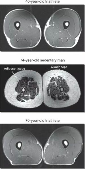 Need a reason to exercise? This study looked at how exercise can preserve muscle mass. Here they compare a 74-year old sedentary man and a 70-year old triathlete, and the difference in fat and muscle tissue is extreme. Wroblewski A, Amati F, Smiley M, et al. Chronic exercise preserves lean muscle mass in masters athletes. Physician Sports Med. 2011;39:172–178