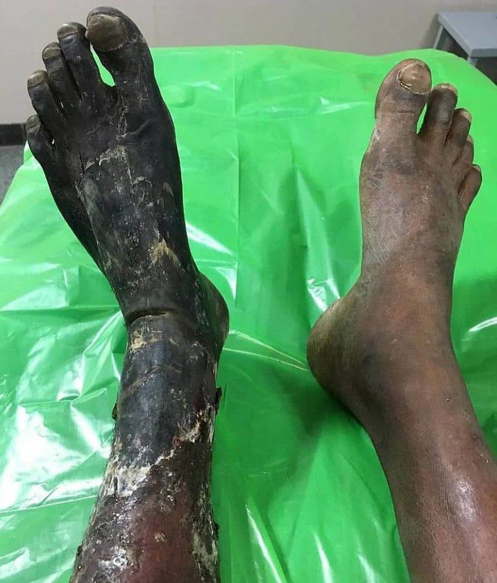 Dry gangrene is a form of coagulative necrosis that develops in ischemic tissue, a tissue with inadequate blood supply. It is not a disease itself, but a symptom of other diseases like vascular disease, diabetes, and autoimmune diseases. Image by: https://www.instagram.com/p/CKC2ncIByib/?utm_medium=copy_link
