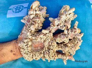 It is characterized by abnormal susceptibility to human papillomaviruses (HPVs) of the skin. The resulting uncontrolled HPV infections result in the growth of scaly macules and papules, particularly on the hands and feet. This 42 year old male, whose hand was disfigured from an extremely rare contagious condition, was suffering from epidermodysplasia verruciformis, or "tree man syndrome". He arrived with large painful growths on his hand caused by complications from human papillomavirus infection, which can be cancerous. After the tumors were surgically removed, skin grafts from other areas of his body were used to patch his hand. 📷•Medicogram•