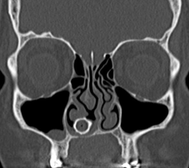 Rhinolith is a lesion that arises in the nasal cavity due to chronic inflammatory response against a lodged foreign body that results in total or partial encrustation of the particulate with minerals. This condition can present with symptoms of unilateral purulent nasal discharge and nasal obstruction that leads to medical consultation.