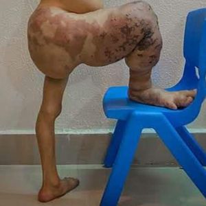 Klippel-Trenaunay syndrome (KTS)which is a rare congenital vascular disorder in which a limb may be affected by port wine stains (red-purple birthmarks involving blood vessels), varicose veins, and/or too much bone and soft tissue growth. The limb may be larger, longer, and/or warmer than normal. The cause is unknown