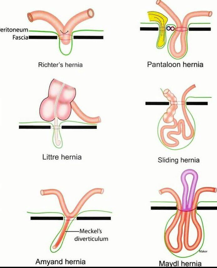 A hernia is an abnormal exit of tissue or organ, such as bowel through the cavity in which it normally resides. Hernia comes in number of types found commonly in groin.