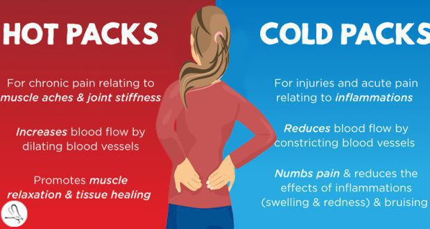 Hot and cold packs are common home remedy for various kinds of pain. However, the usage of both is often confused. The attached image provides a brief overview of properties and use of hot and cold packs. Reference: https://discoverchiropracticaustin.com/hot-and-cold-therapy/