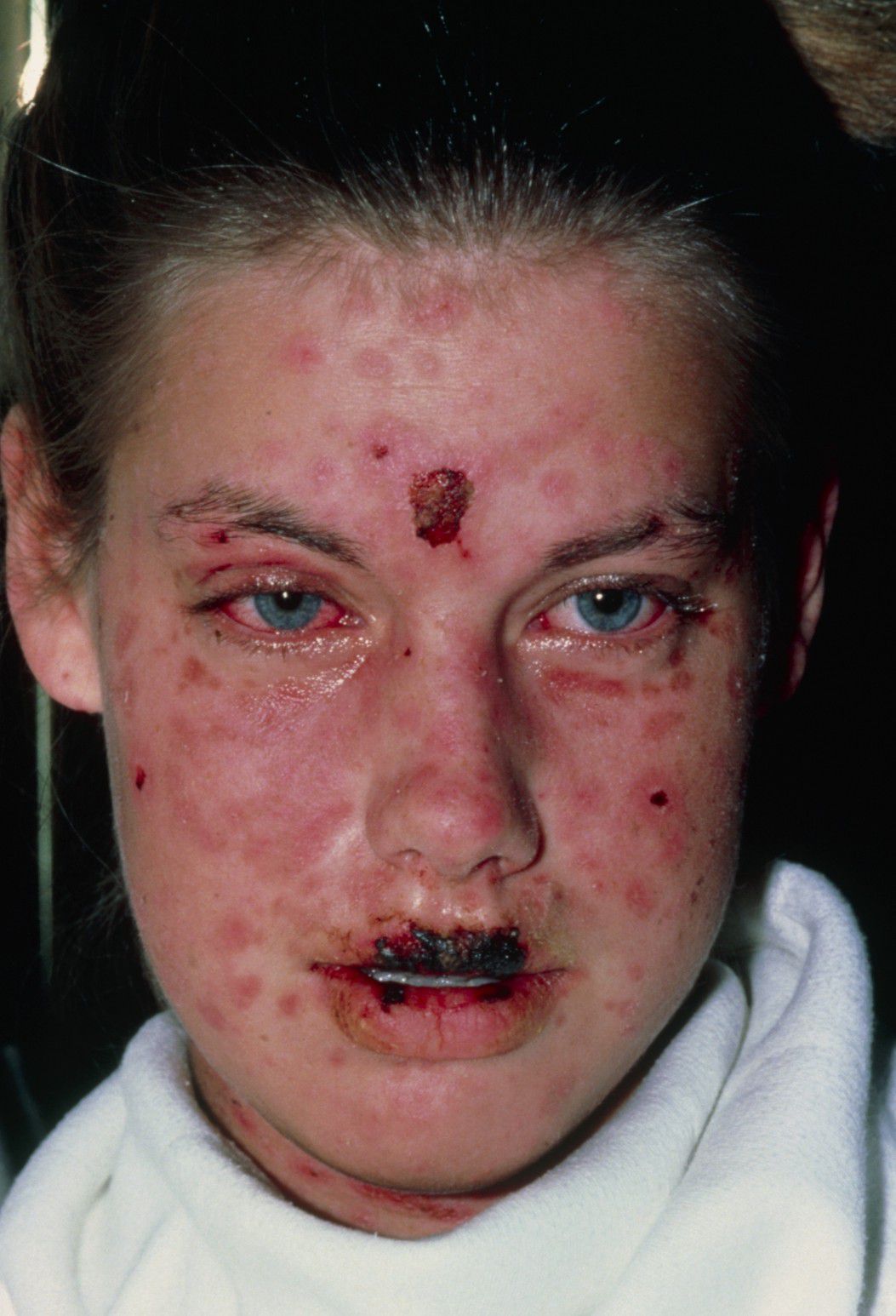 It is also called 'Toxic Epidermal Necrolysis'.The rash consists of pink or dark red spots that involves skin,lips,mouth and genitals. This condition is most likely due to a medication to which the body reacts.