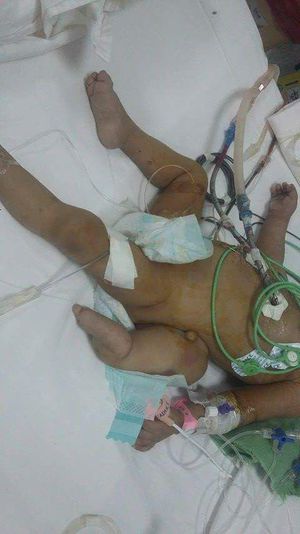It is the leg of a parasitic twin that didn’t grow properly. Normally the orthopaedic team can remove it and the baby should be able to grow and function well throughout life.