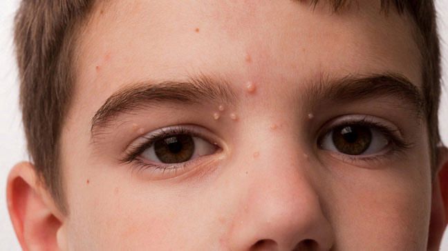 Molluscum contagiosum is a self-limited viral infection caused by a pox virus. It is common in young sexually active adults and children. Transmission occurs via skin-to-skin contact (sexual contact can lead to genital involvement) and is highly contagious. It manifests as small papules with central umbilication. Lesions are mostly asymptomatic. It persists for up to 6 months but regresses spontaneously with time. Multiple treatment modalities are effective, like curettage, the use of drops containing podophyllin and cantharidin, and cryosurgery.