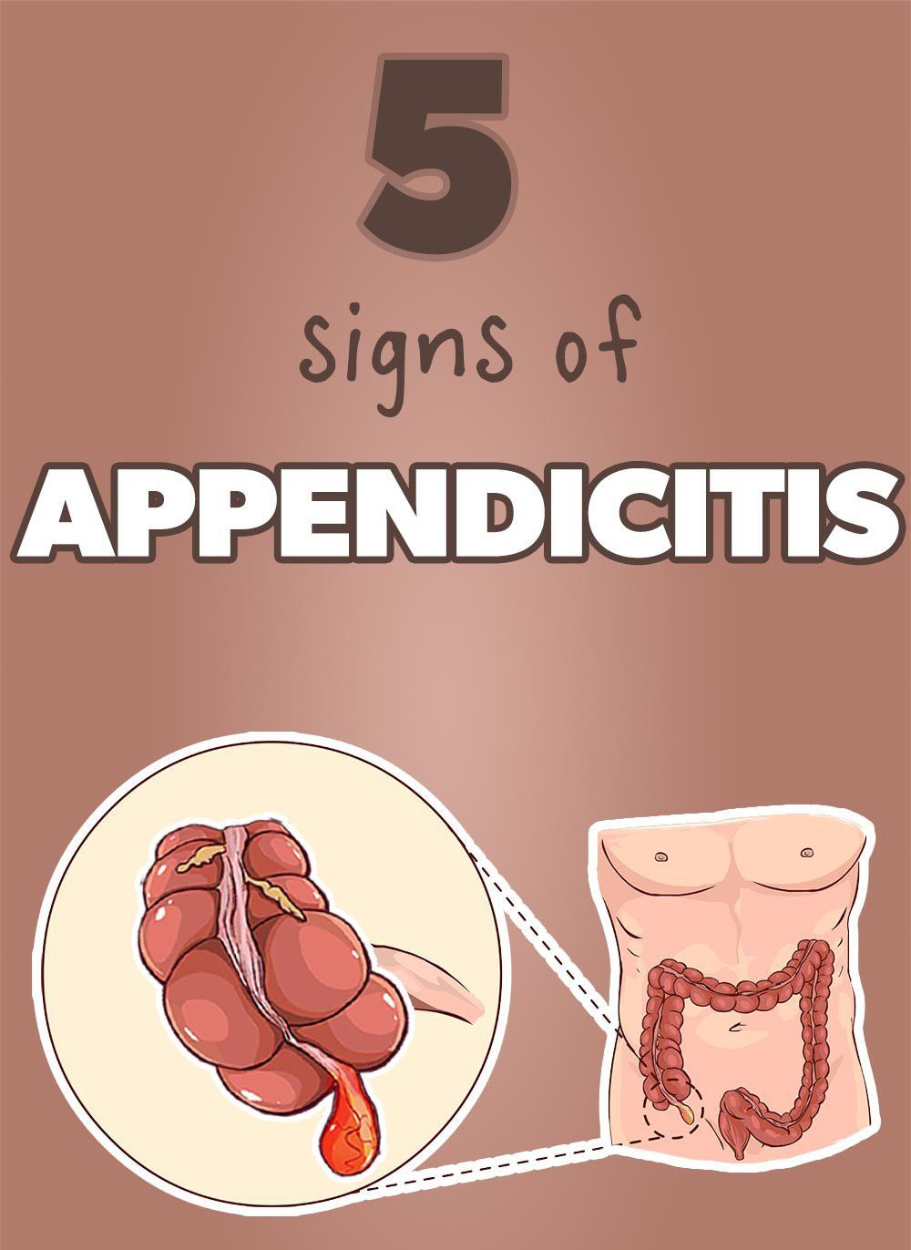 1)Mcburneys sign: Mcburney’s sign which is also called Mcburney’s point tenderness is when the most tender area of the patient's body is 1.5 inches from the anterior superior iliac spine in the direction of the umbilicus. 2)Guarding and Rebound tenderness: Guarding is the phenomena in which abdominal muscles tense up when the doctor is palpating. Rebound tenderness is when there is pain after pressure is released while palpating. 3)Rovsing sign: It means that there is tenderness in RLQ when palpating LLQ. 4)Obturator sign. 5)Psoas sign.
