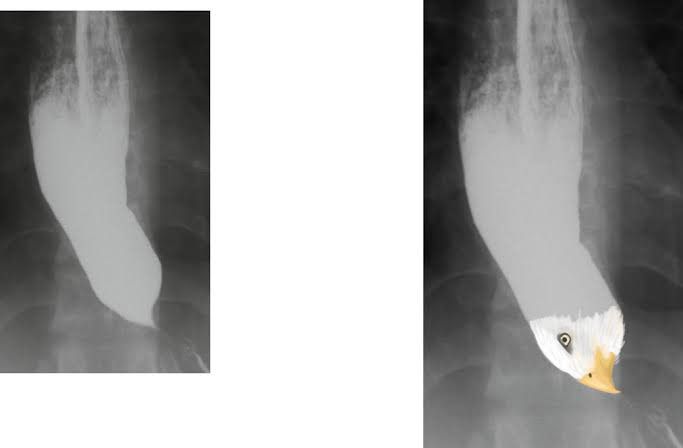 Achalasia is an esophageal disorder characterized by impaired mobility of the esophagus along with the failure of relaxation of lower eaophageal sphincter. On X-ray imaging it appears as a tapering of the gastro-esophageal junction producing a bird’s beak or rat’s tail appearance. Picture credit: https://onlinelibrary.wiley.com/doi/full/10.1111/1754-9485.06_12784
