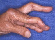 Swan neck deformity is a clinical sign in degenerative diseases e.g., rheumatoid arthritis. It is found in approximately 50% of cases of rheumatoid arthritis. It is characterized by hyperextended proximal interphalangeal joint and flexed distal interphalangeal joint. The diagnosis is based on history and clinical examination. Initially, it is treated by splinting. Volar plate advancement with central slip tenotomy is reserved for progressive cases. Reference: https://www.orthobullets.com/hand/6013/swan-neck-deformity