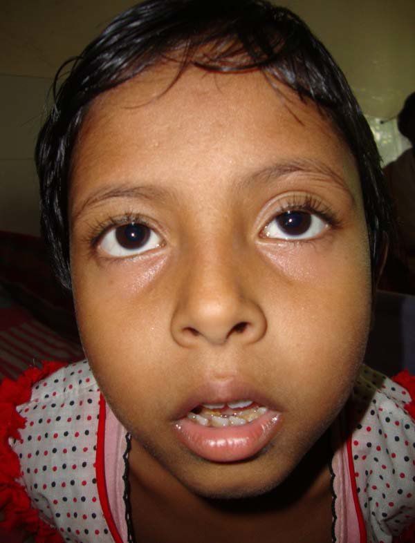 In patients with adenoids, persistent nasal obstruction and mouth breathing lead to characteristic facial appearance called adenoid facies. The child has an open mouth, prominent incisors, pinched nostril, drooling of saliva, and dull expressions.