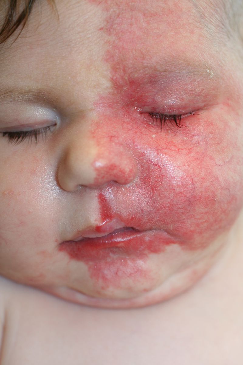 As the title says, PHACE syndrome is an extremely rare disorder characterised by problems in multiple systems. It is an association between segmental infantile hemangiomas and malformations of the heart, eyes, major arteries and brain. It's cause is unknown and it is thought to arise sporadically. The term PHACE itself is an acronym for the most common clinical presentation with "P" for posterior fossa brain malformations, "H" for hemangiomas, "A" for arterial anomalies, "C" for cardiac anomalies and coarctation of aorta and "E" for eye and endocrine abnormalities. The treatment differs based on which bodily system is affected. Therefore, the patient requires a team of various specialists including dermatologist, cardiologist, ophthalmologist, neurologist etc. For the hemangioma, systemic steroids and even propranolol therapy have proven to be quite beneficial.