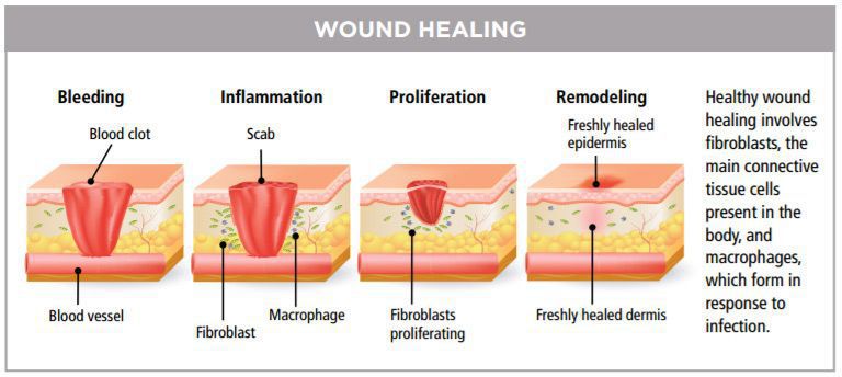 The stages of wound healing are summarized in the attached image.