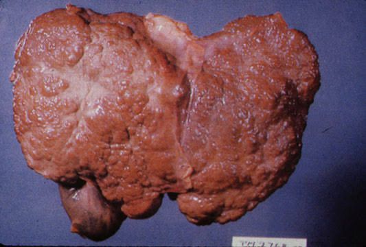 Liver cirrhosis is a chronic state of liver characteristized by fibrosis and scarring surrounding the regenerating parenchymal nodules. The causes of liver cirrhosis includes Hepatitis infection, non-alcoholic fatty liver disease and alcoholic liver disease. The patient with liver cirrhosis may be asymptotic or May clinically present with weight loss, weakness, anorexia and in later stages with liver failure signs like jaundice, encephalopathy, pruritus, portal hypertension, hyperestrogenemia and coagulopathy. In complicated cases this condition may predispose to hepatocellular carcinoma. Picture credit: https://www.meddean.luc.edu/lumen/meded/orfpath/cirhosis.htm