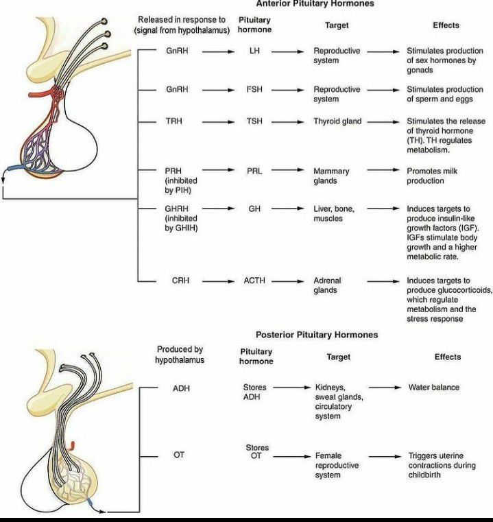 Pituitary is a pea size gland of human body consisting of three lobes/parts known as anterior, median and posterior pituitary through which hormones are released.The hormones from posterior and anterior pituitary with their affects on the body are given in this picture