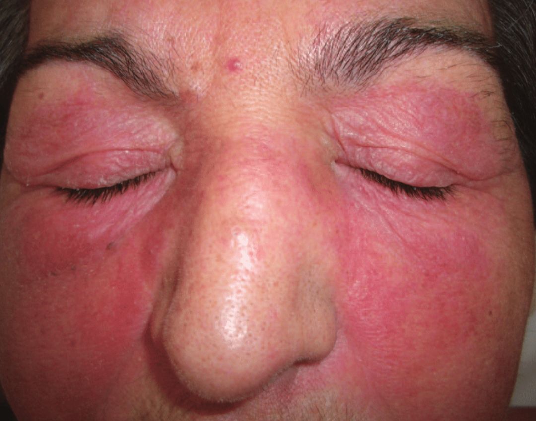 Heliotrope rash is the most characteristic finding in the patients of dermatomyositis. It is defined as lilac coloured discoloration of upper eyelids.