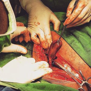 A 49 year-old obese female presented to a community physician late in the afternoon with progressively worsening yet constant RUQ pain that worsened after eating a fatty meal. She obtained a RUQ ultrasound scan, and then was referred to the hospital in which this surgery was done later on. Follow us @medshots for more shots