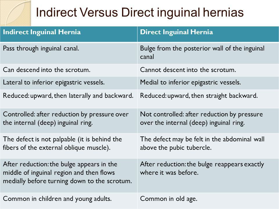 Differences between indirect and direct inguinal hernias