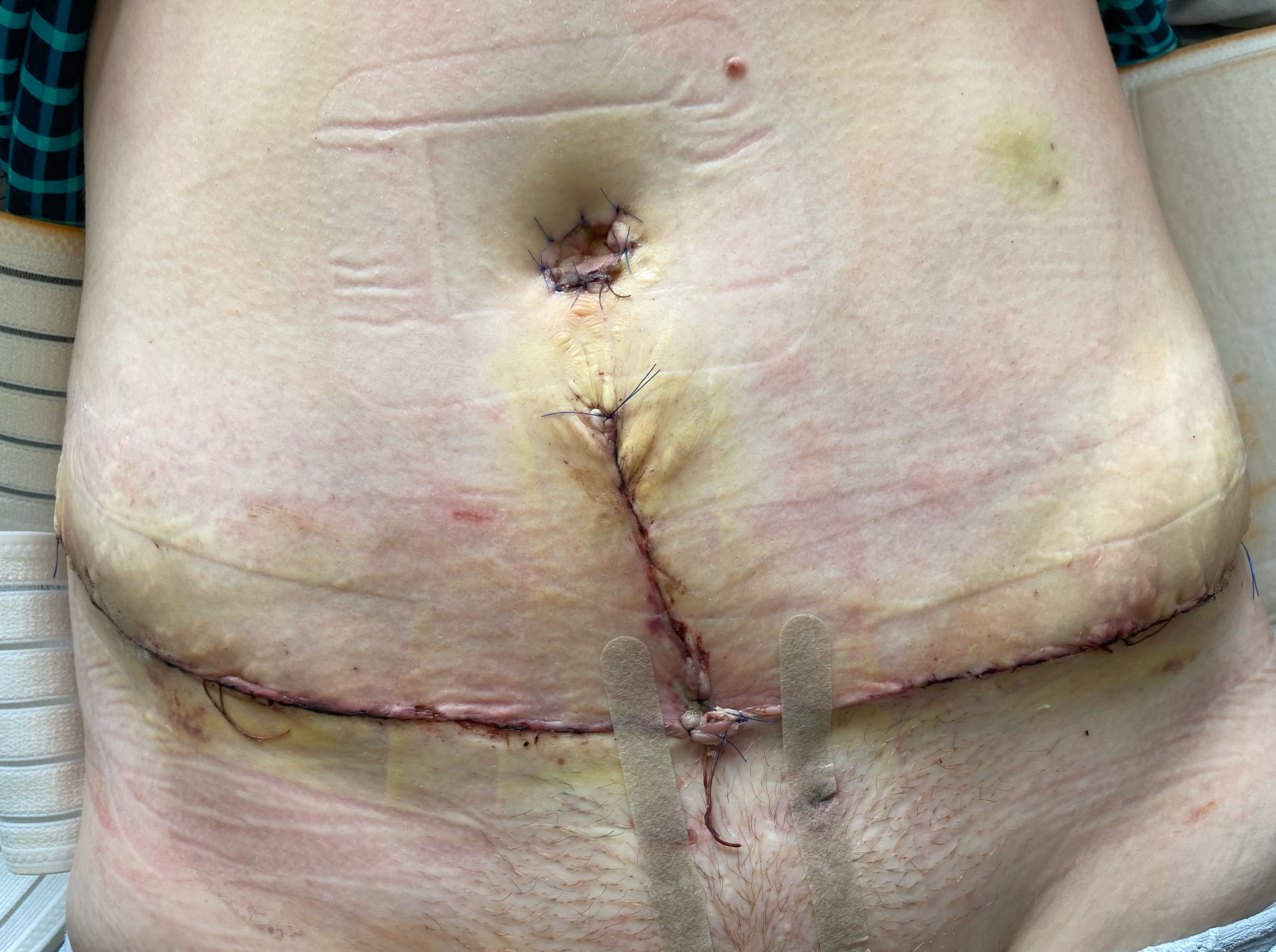 Abdominoplasty with suturing of the rectus muscles and moving the navel