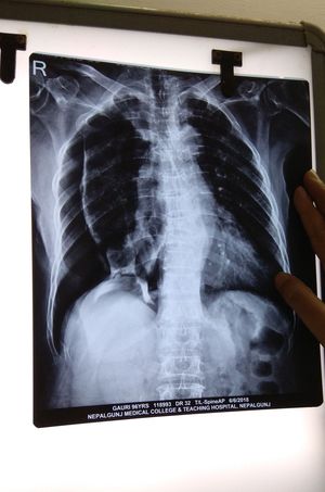 Rt peumothorax with ribs fracture ,difficult to comment on left bcoz poor quality of xray