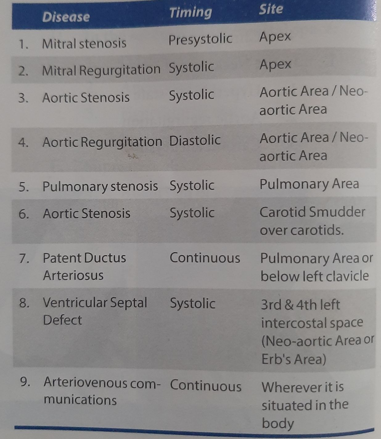 Best areas for auscultation